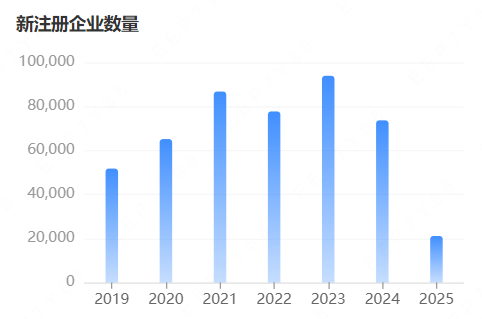 - 2019年基础量为51779家,受政策激励2020年跃升25.9%至65197家;