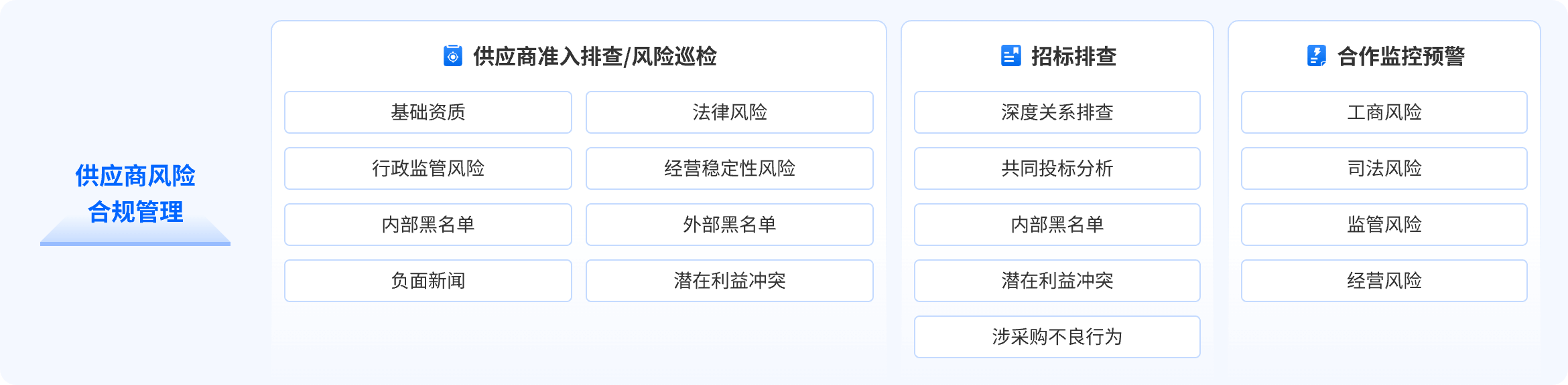 潜在风险识别:在供应商准入环节,我们进行全面的资质综合排查,以高效快速地识别潜在的风险,如行贿犯罪、商业贿赂、内部腐败、潜在利益冲突等。这有助于排除存在明显问题的企业,从源头预防潜在风险的发生。